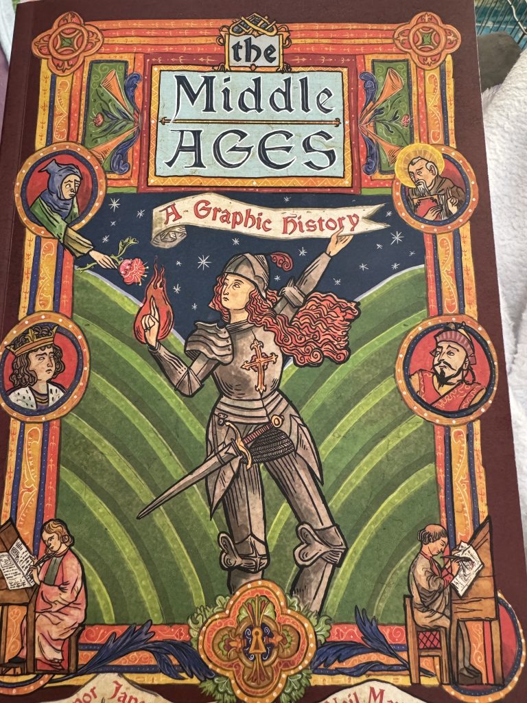 I recently finished The Middle Ages: A Graphic History, one of the last books Dad gave me for my birthday (at my request). He appreciated the use of art as a way to tell a story; his interest in graphics began early with his enjoyment of, and later collection of, Classics Illustrated comics. (E.g., see blog post: https://tothineownselfbetrue.ca/2022/05/08/comic-book-day-in-e-town/)
