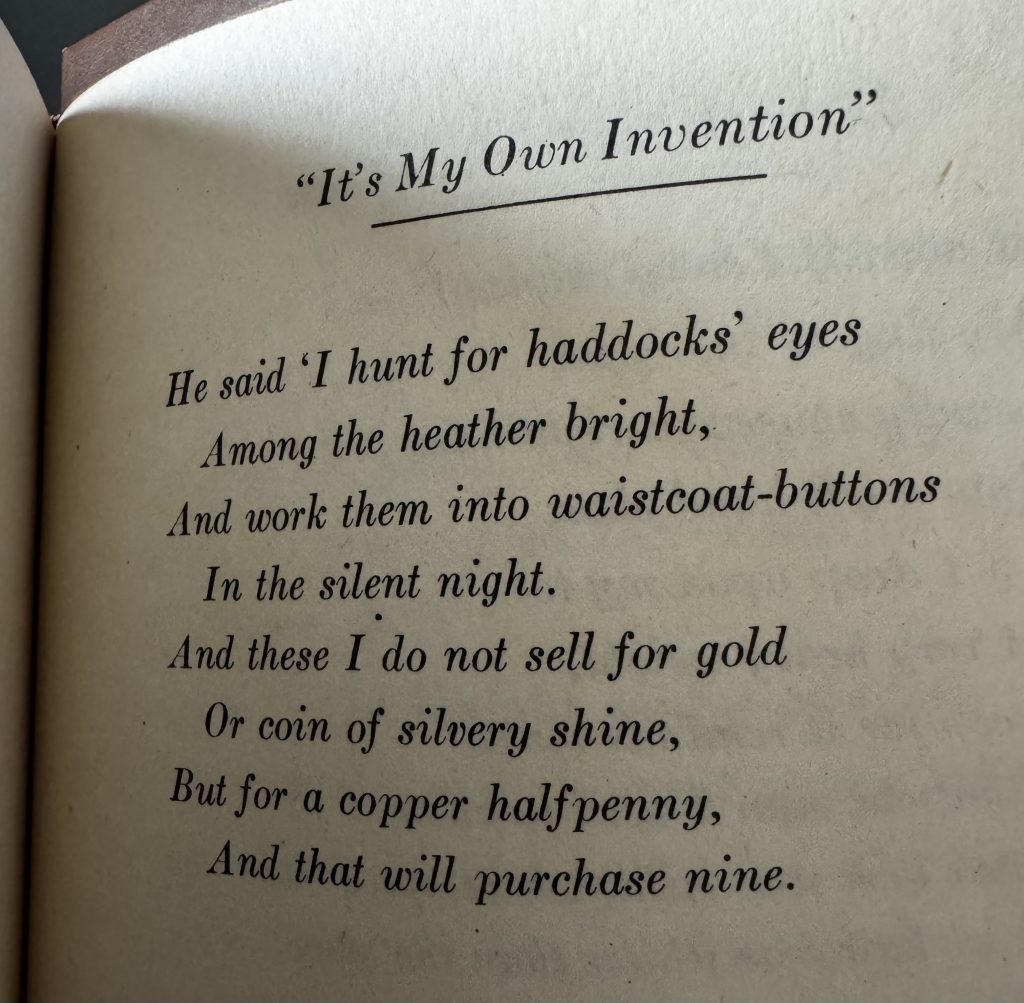 The author was pleased to see her name in the White Knight’s poem today as she continued her Looking Glass odyssey.